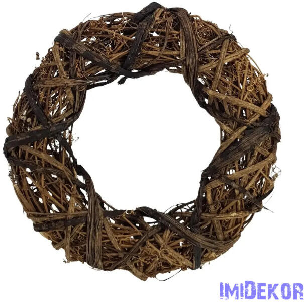 Fém váz alapú, masszív, barna indákkal körbetekert koszorú. Egzotikus és látványos koszorúalap, ami könnyedén díszíthető és beleillik a tavasztól őszig tartó összes szezonális dekorációba. Méret: átmérő: 30cm, vast. : kb. 80mm
